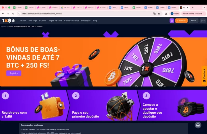 A casa oferece uma promoção de boas-vindas para os primeiros quatro depósitos, com valor total de até 7 BTC + 250 rodadas grátis. O prazo para cumprir os requisitos de aposta é de 30 dias. Para transformar o bônus em dinheiro real, é necessário apostar o depósito 40 vezes no mês.
