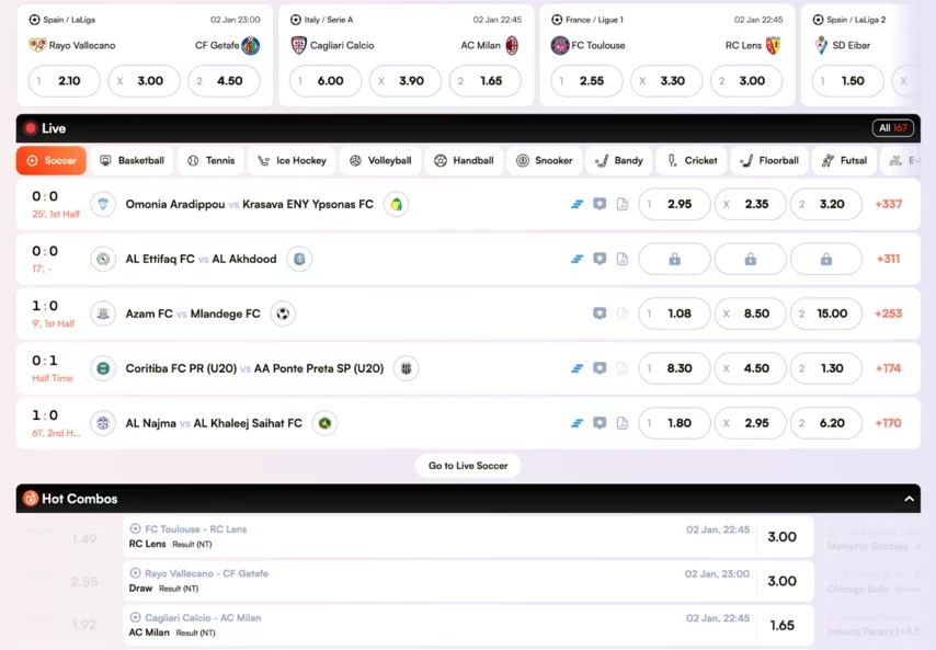 Outro ponto positivo é a possibilidade de fazer apostas combinadas (multiples/acumuladores) e receber incentivos por isso: o BetorSpin promove bônus para apostas múltiplas, aumentando o ganho potencial conforme o número de seleções. Por exemplo, apostas combinadas de 2 jogos podem receber um incremento de +2% nas odds totais, de 3 jogos +4%, e assim por diante, recompensando quem arrisca em múltiplos eventos.