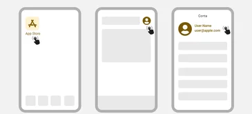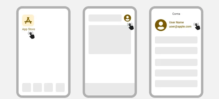 1. Acesse sua conta Apple, abra a App Store, toque no ícone da sua conta, clique no seu nome para acessar os dados da conta.