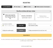 A segunda opção é a mais simples, e o próprio sistema vai ter um login e senha. No entanto, para fazer saques, você precisará confirmar outros dados mais tarde. Em todos os casos há a opção de escolher um bônus de boas-vindas (falamos sobre ele mais abaixo).