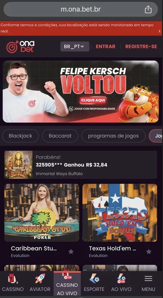 O site oficial da Onabet é bem organizado e fácil de usar. Logo na página inicial, um menu superior permite acessar rapidamente as seções de Esportes, Ao Vivo, Cassino, Cassino Ao Vivo, Promoções, entre outras. Assim, mesmo novos usuários conseguem encontrar sem dificuldades o que procuram para jogar online, seja uma partida de esporte ou um jogo de cassino.