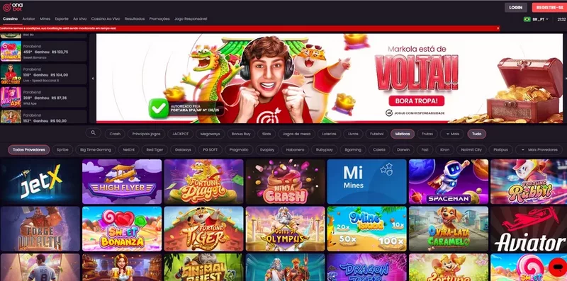 Além das apostas esportivas com odds competitivas, a Onabet conta com uma seção robusta de cassino, incluindo caça-níqueis (slots), roleta, blackjack e até jogos de estilo “crash” como o Aviator. Tudo isso está integrado em uma única conta de usuário, sem necessidade de múltiplos registros separados para cada modalidade. Em resumo, a Onabet combina o melhor de um site de apostas esportivas com a diversão de um cassino online, posicionando-se como uma opção completa para quem deseja aproveitar diversas formas de entretenimento em um só lugar.