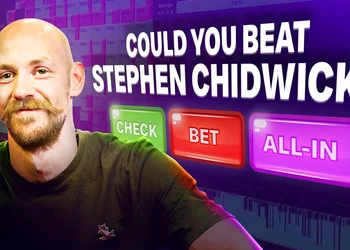 Chidwick: Boards com duas broadways geralmente favorecem um sizing maior. Não estamos preocupados com proteção e atacamos mãos relativamente fortes — e . Os blefes com pocket pairs costumam ser feitos com os mais fracos deles, e , ao que me parece, é um pouco alto demais. Eu vou de check.