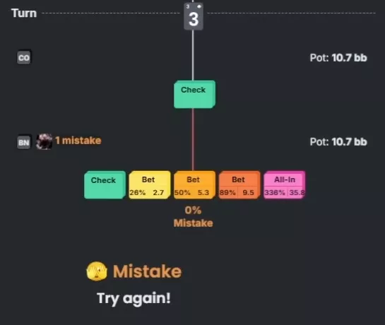 Apresentador: Bom, pode ser assim também. São 24% de checks, mas isso já basta. A escolha principal do solver é uma c-bet pequena.
