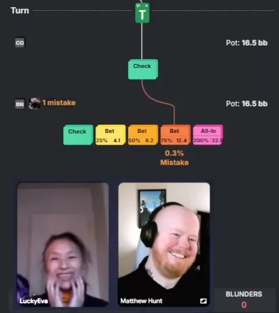 Apresentador: E aqui está o primeiro erro! Mas ele não perde EV, então pelas nossas regras isso não conta como erro.