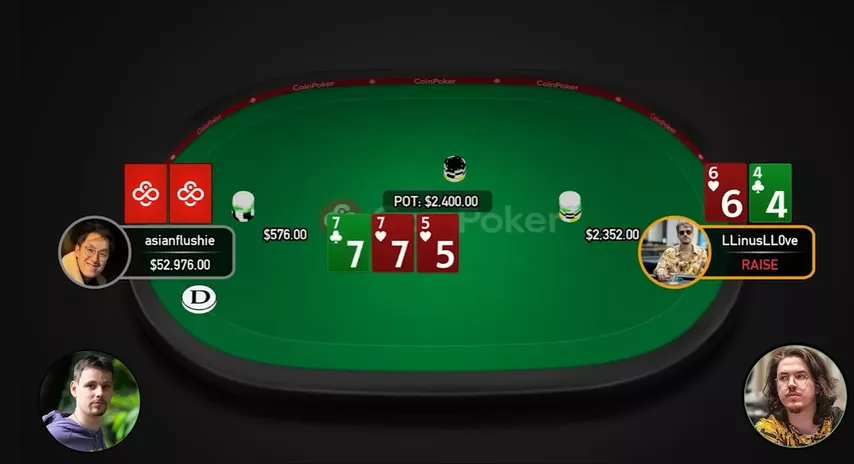 — Na primeira mão, Linus defendeu no pré-flop contra um raise de 2.5x, e depois aplicou um check-raise no flop. Tudo padrão?