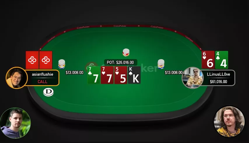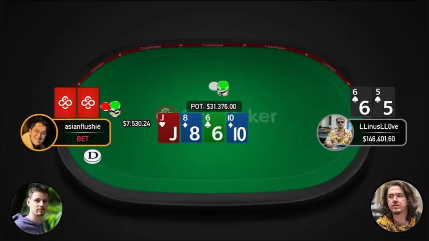— Flushie dá call, e no turn Linus aposta meio pote.