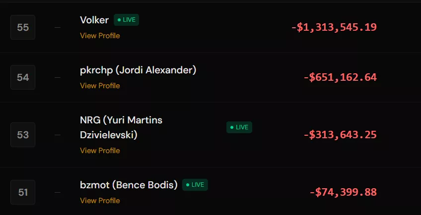O jogo mais cruel para ele foi PLO5, no qual perdeu $233k em 902 mãos.