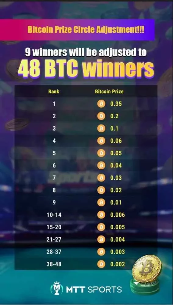 - A prize pool começa em 5 MTT para cada jogador que atinge o top 100, mas cresce conforme o número de jogadores aumenta.
