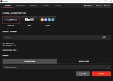 Apesar de estar disponível no site, o Skrill não funciona mais para jogadores do Brasil.