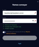 - Preencha a caixa de registro com seu e-mail e uma senha confiável.