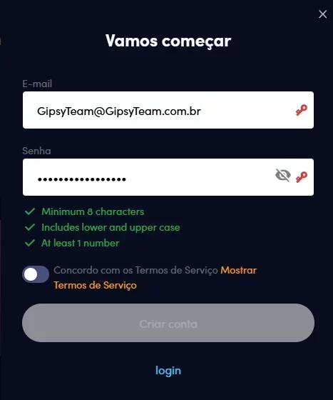 Para se registrar na SpinBet é muito simples, basta acessar o site oficial pelo link de afiliados do GipsyTeam e seguir os passos abaixo:
