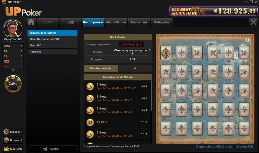 Em torneios especiais, além dos MTTs, o UP Poker promove freerolls diários gratuitos (ótimos para iniciantes) e eventos classificatórios. Por exemplo, ao completar missões de início, os jogadores ganham inscrições para torneios com premiação garantida e até vagas para o UPLS ($50 mil GTD). No total, há sempre algo rolando no cronograma do site, com grande volume de mesas em horários de pico, garantindo muito jogo tanto para recreativos quanto para grinders sérios.