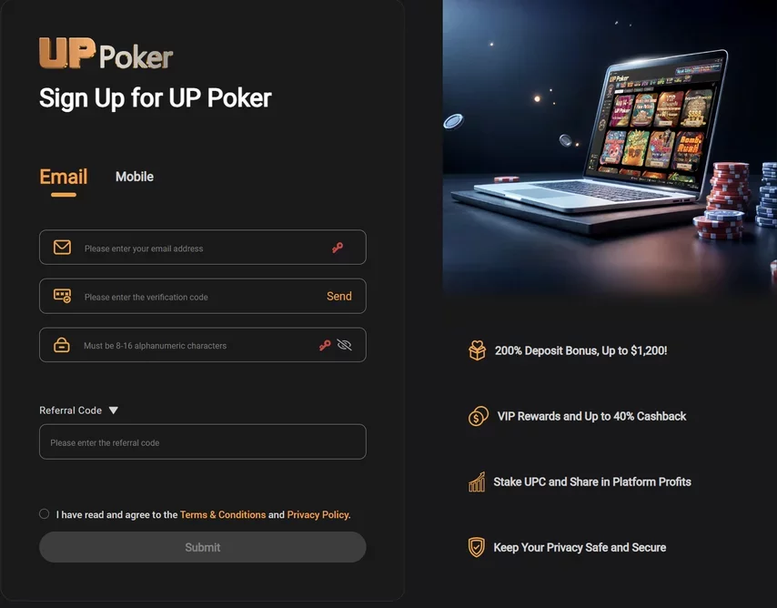Como me registro e começo a jogar no UP Poker?